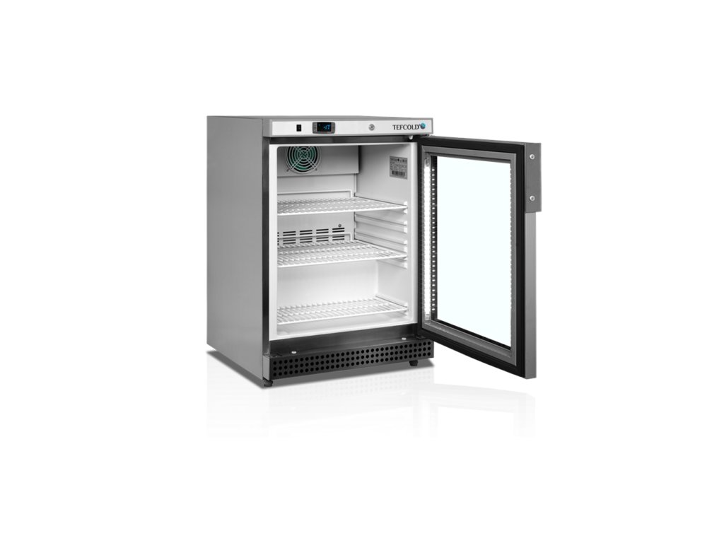Řada mrazicích skříní UF-VSG je verzí našich nerezových mrazicích skříní s prosklenými dveřmi a ventilovaným chlazením. Dodává se v různých velikostech a nabízí velkou flexibilitu díky nastavitelným policím. Účinný ventilační chladicí systém zajišťuje rovnoměrnou teplotu v celé skříni. Teplotu lze nastavit na snadno ovladatelném digitálním displeji termostatu. Odmrazování probíhá automaticky.
