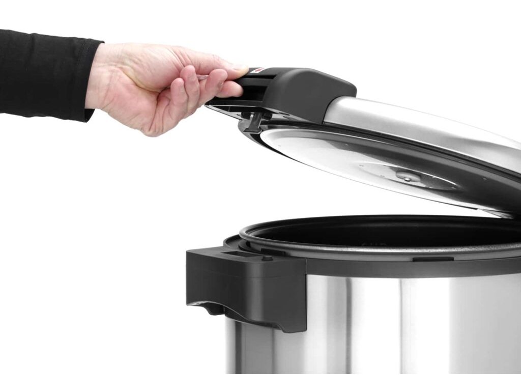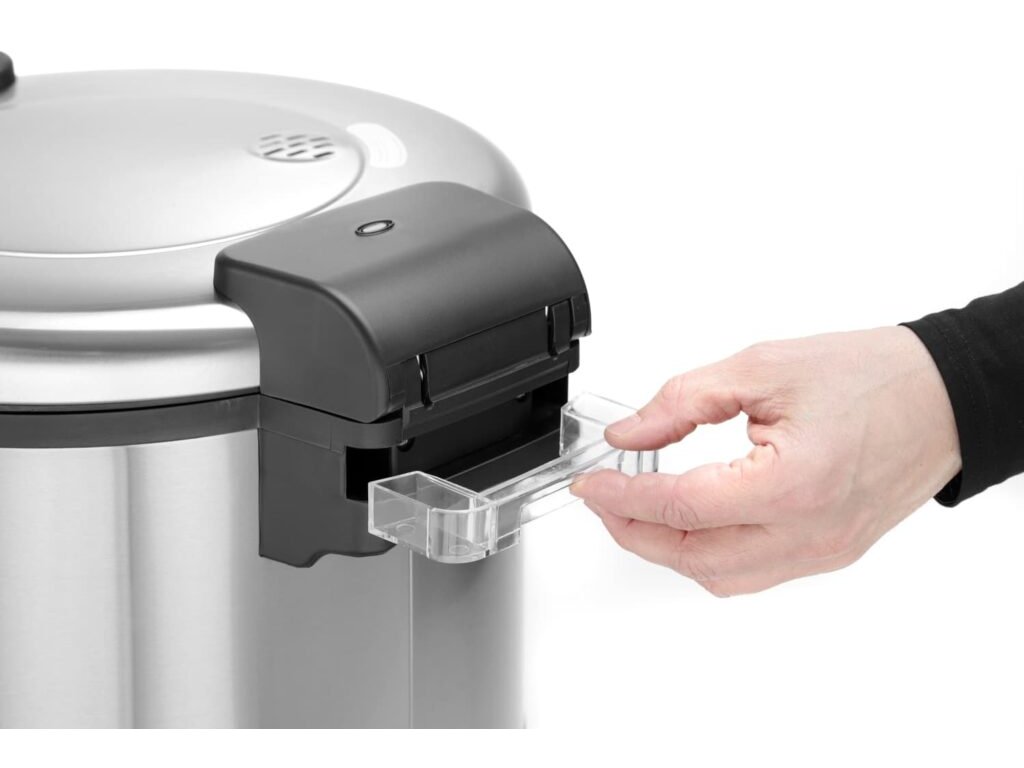 - Nádoba na sběr kondenzátu stékajícího z nerezavějící oceli chrání pracoviště před namočením 2 pracovní režimy – vaření a udržování tepla; po ukončení vaření zařízení přechází do režimu ohřívání